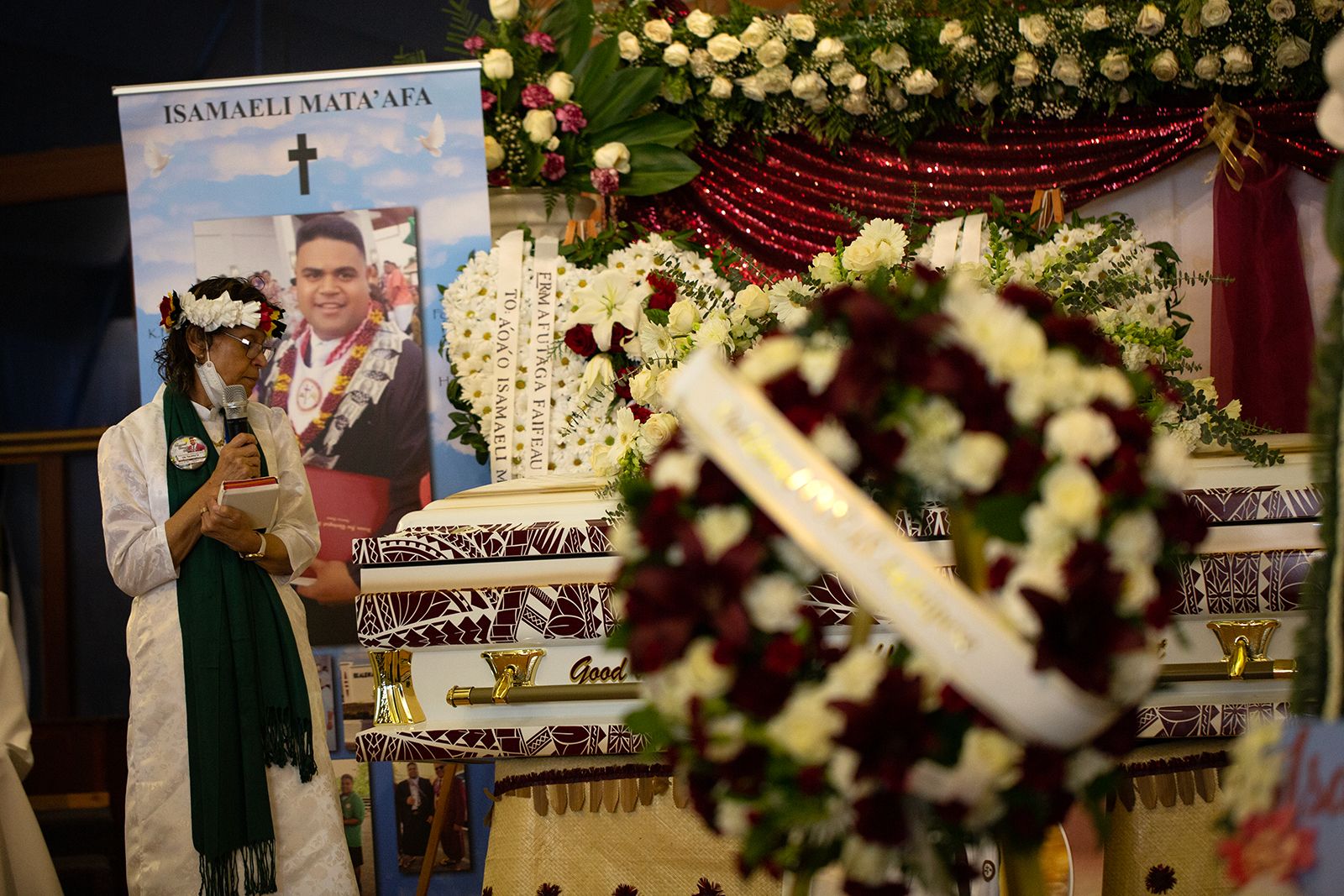 Mata'afa's pastor, Ulysses Ve'e, led Saturday's service, which included hymns and songs as well as prayers and words of comfort.