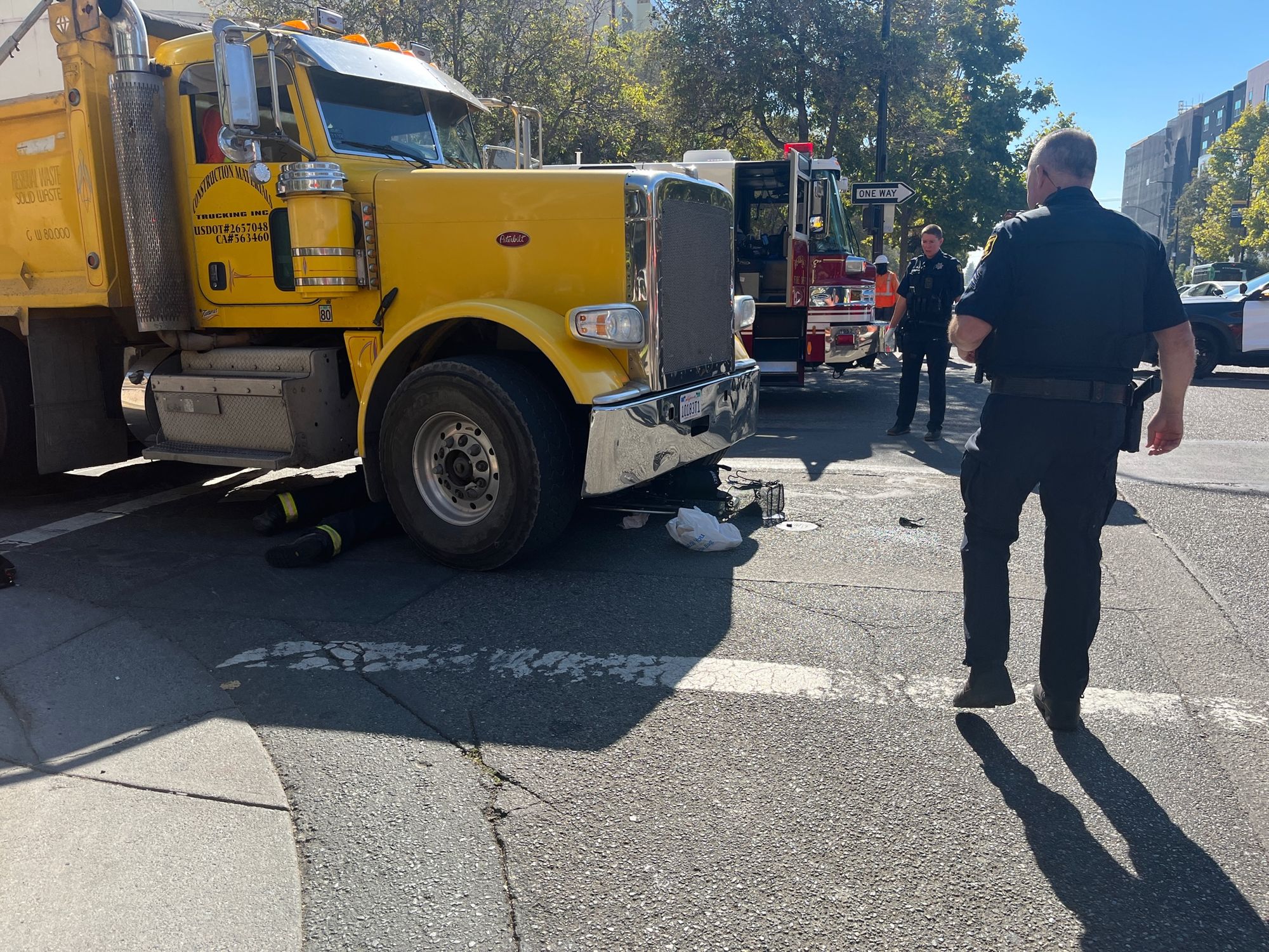 Blake said the man had still been under the truck when he got to the scene. Many police officers and firefighters were also in the area.
