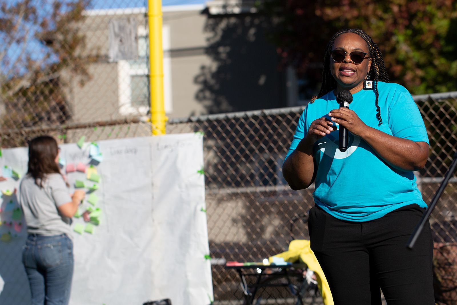 To set the stage for the conversation, attendees were asked early on to write on colorful Post-it Notes about their reasons for coming to Sunday's "Stop the Violence" rally. Several speakers then stepped up to the mic to share what had brought them to the park.