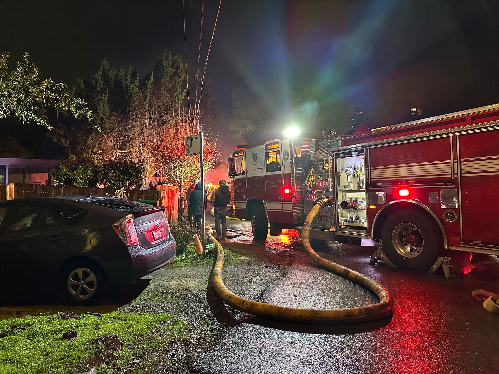Berkeley firefighters responding from the Cedar Street station in West Berkeley could see the flames from 3 miles away as they headed up the hill to Shasta Road, BFD said.