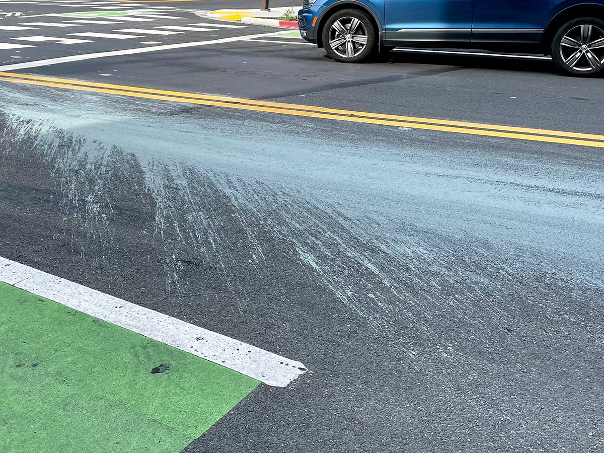 He continued: "When we lived on Rose St. there was some paint dumped near California and Rose and 15 years later you can still see some of it on the road. This was a huge amount of paint on Vine."