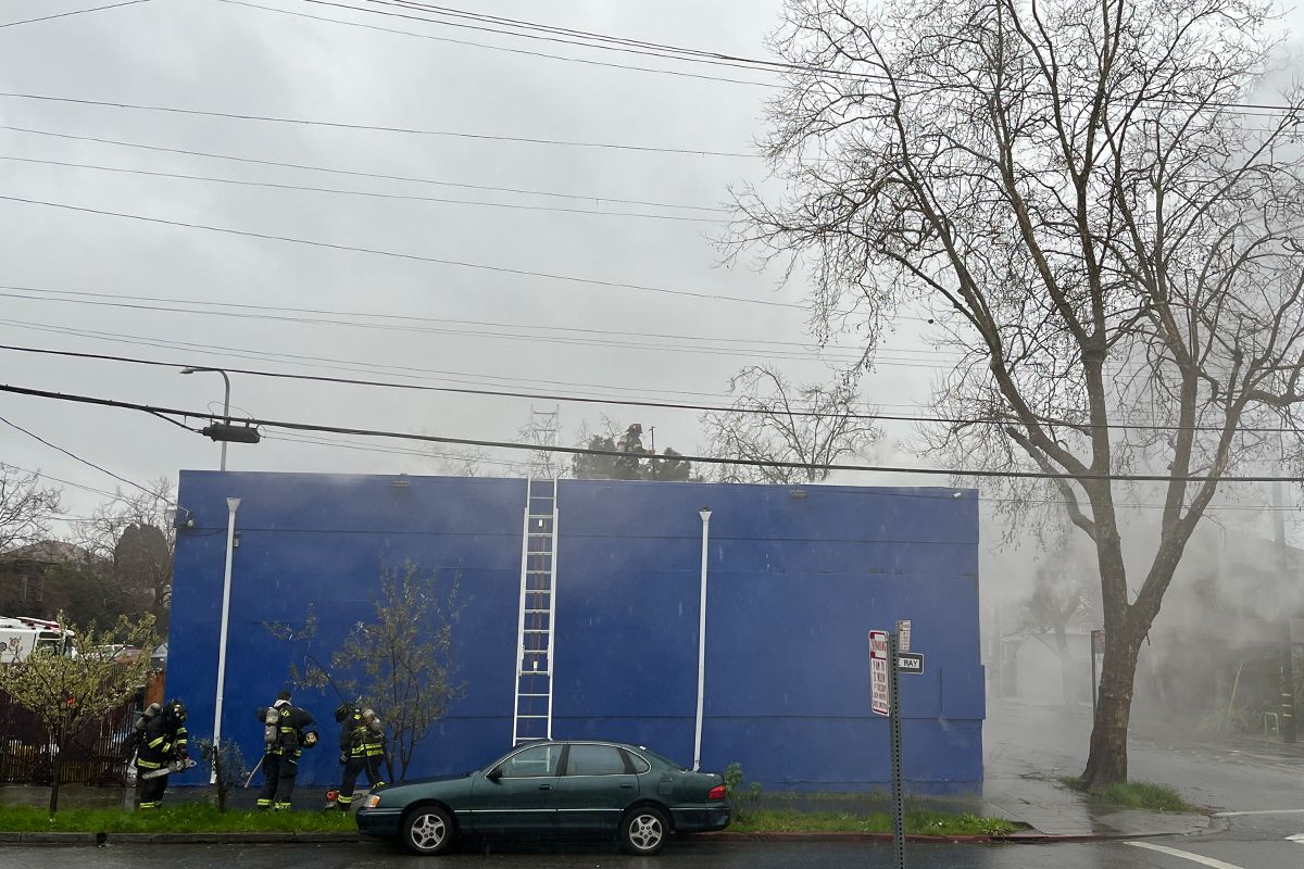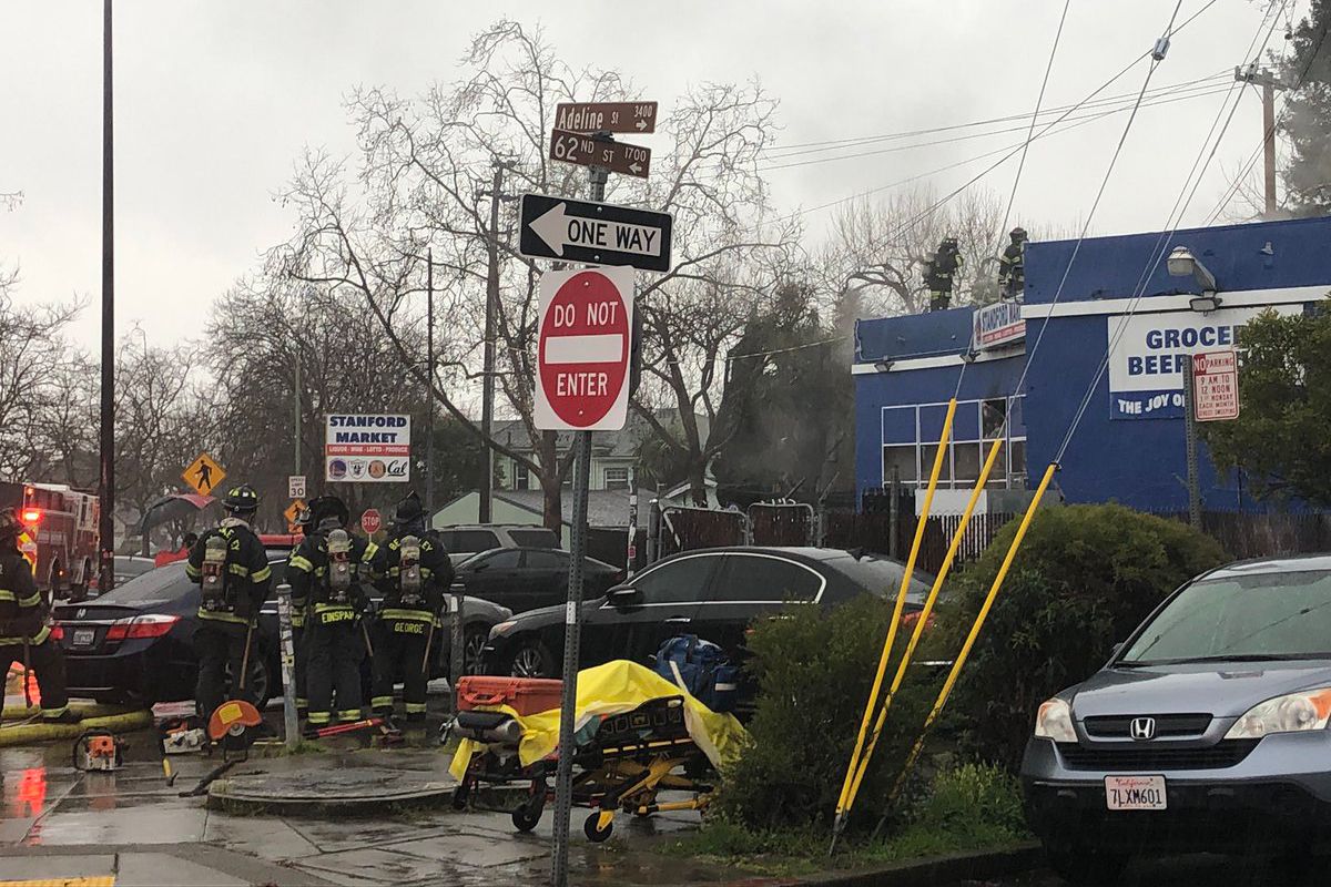 The fire broke out at Stanford Liquor, at 3400 Adeline St. (at King Street), at 11 a.m. Monday.