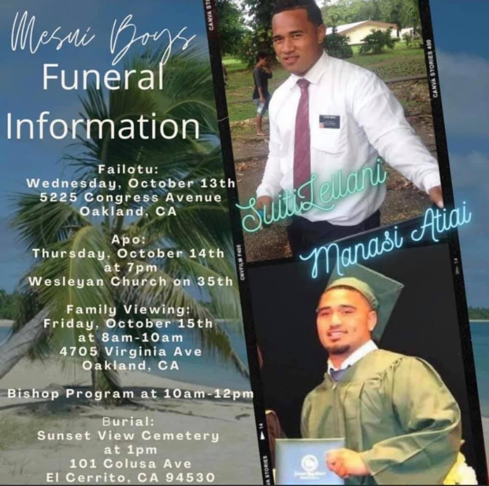 Manase and Suiti Mesui, ages 20 and 24, were killed outside their High Street home in Oakland on Sept. 26, 2021.