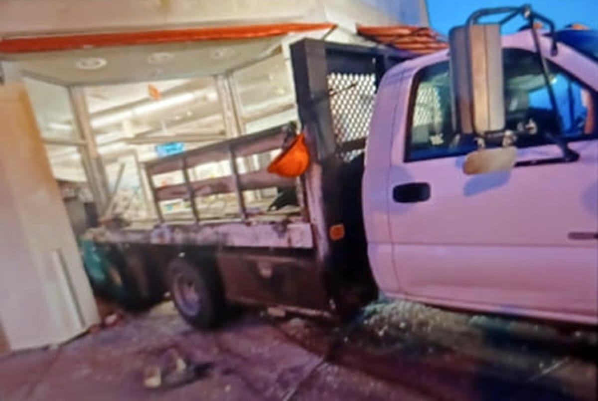 The truck was ultimately towed and at some point, repairmen showed up to replace the glass doors.
