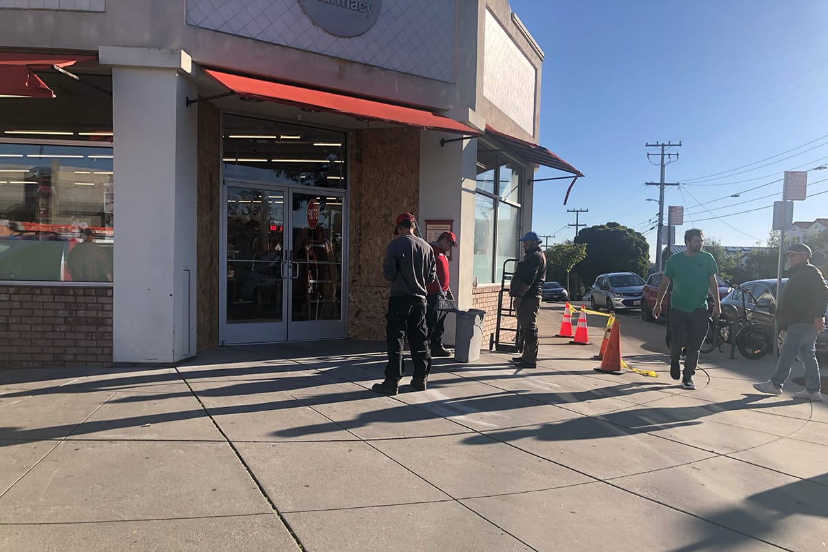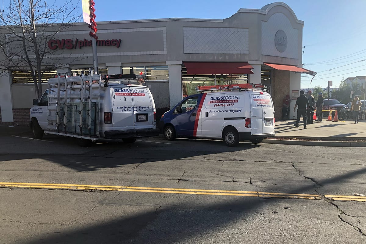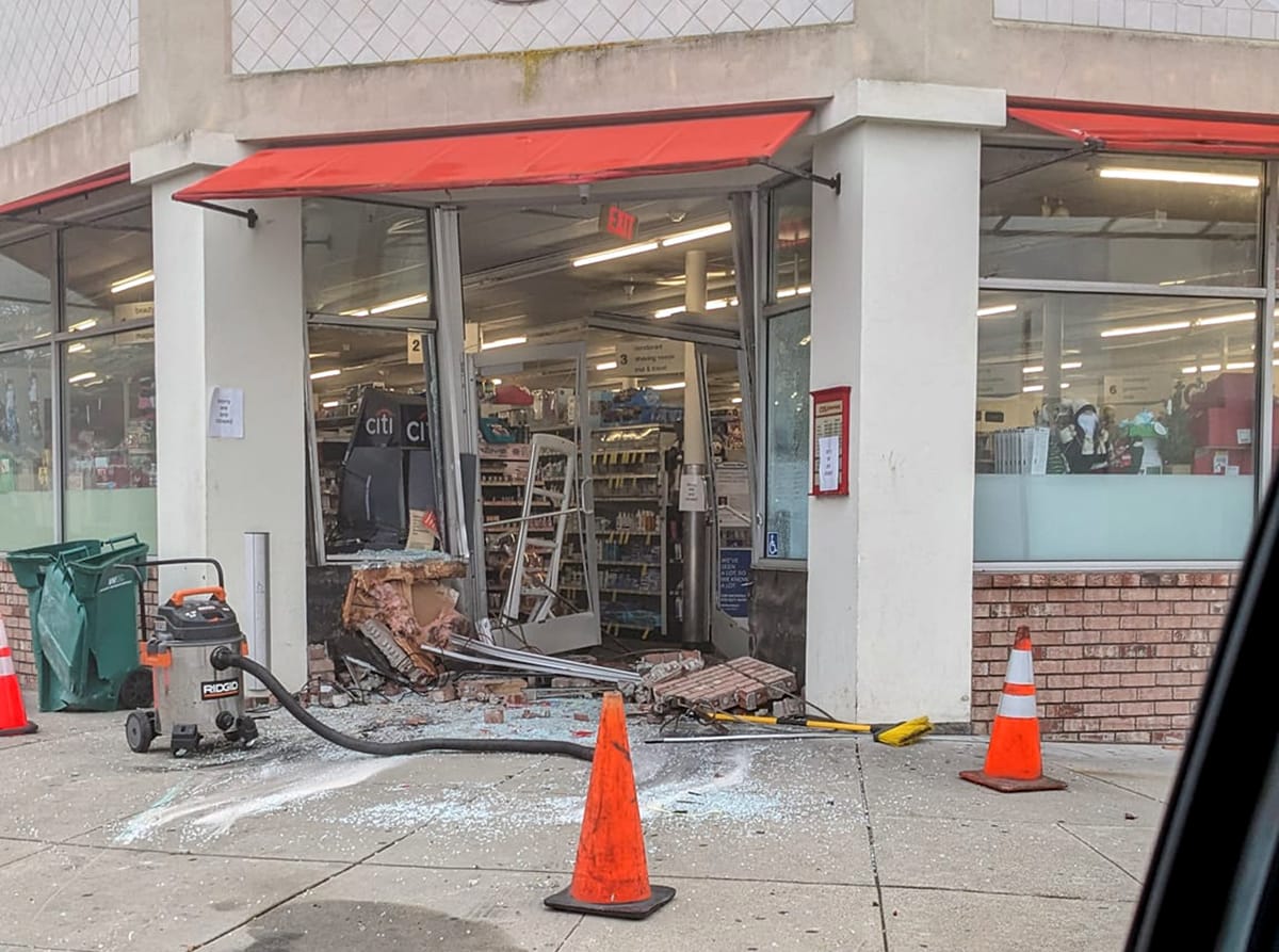 Photos of the damage at CVS and the repaired doors on Friday afternoon, Dec. 22, 2023. Scanner Insiders