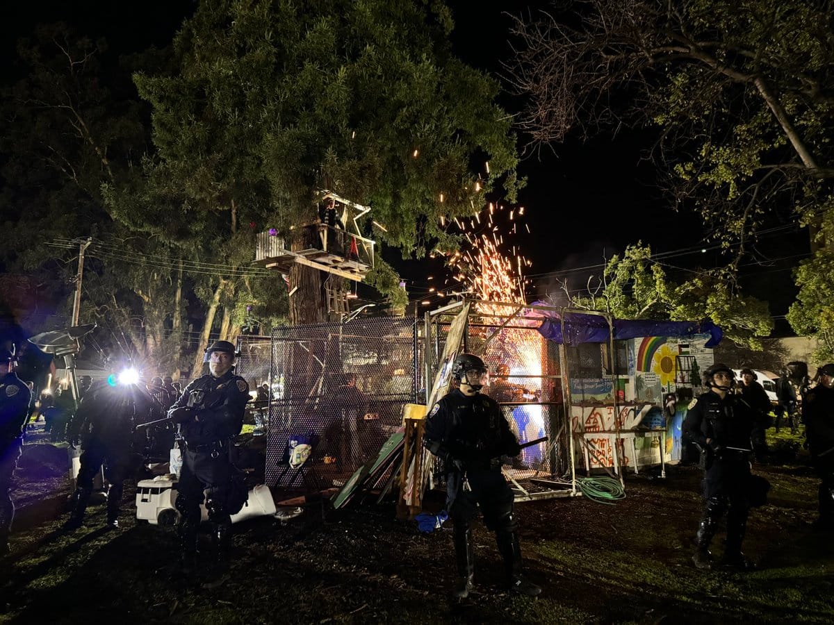 Police officers swept into People's Park overnight and overcame a small protest to secure the site for housing UC Berkeley hopes to build.