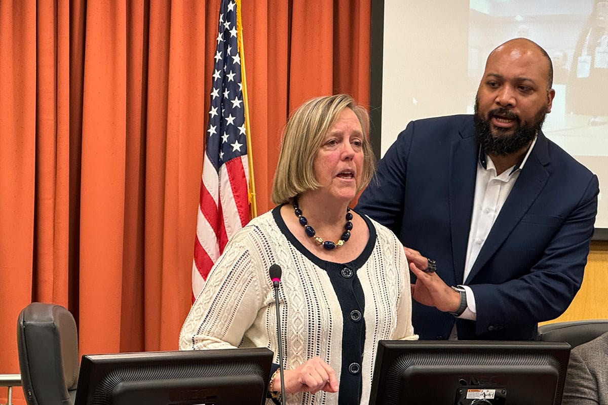 Harrison said her resignation would be effective Feb. 15 but then stepped down from the dais within minutes of her announcement.