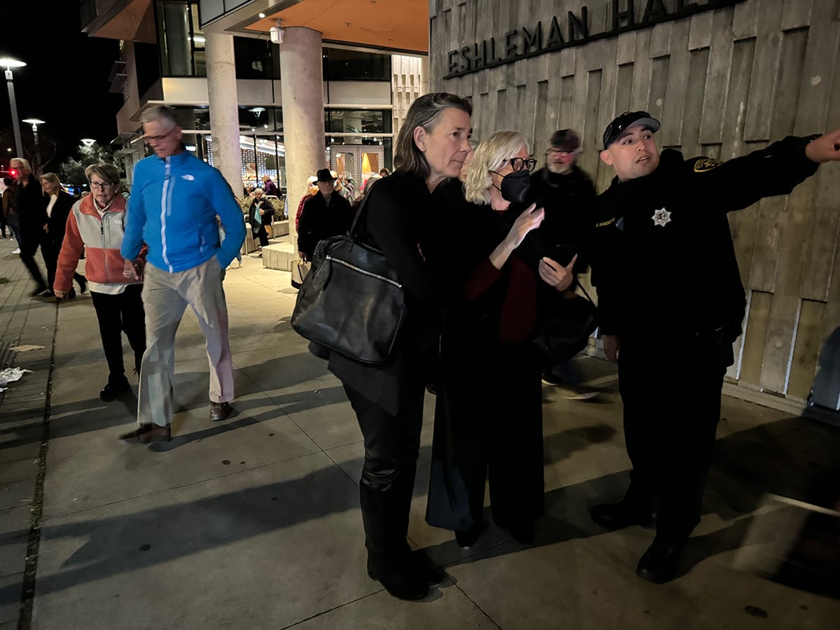 When audience members came outside, they said they had been told to stay in their seats during intermission, which had lasted about 40 minutes instead of the usual 15.