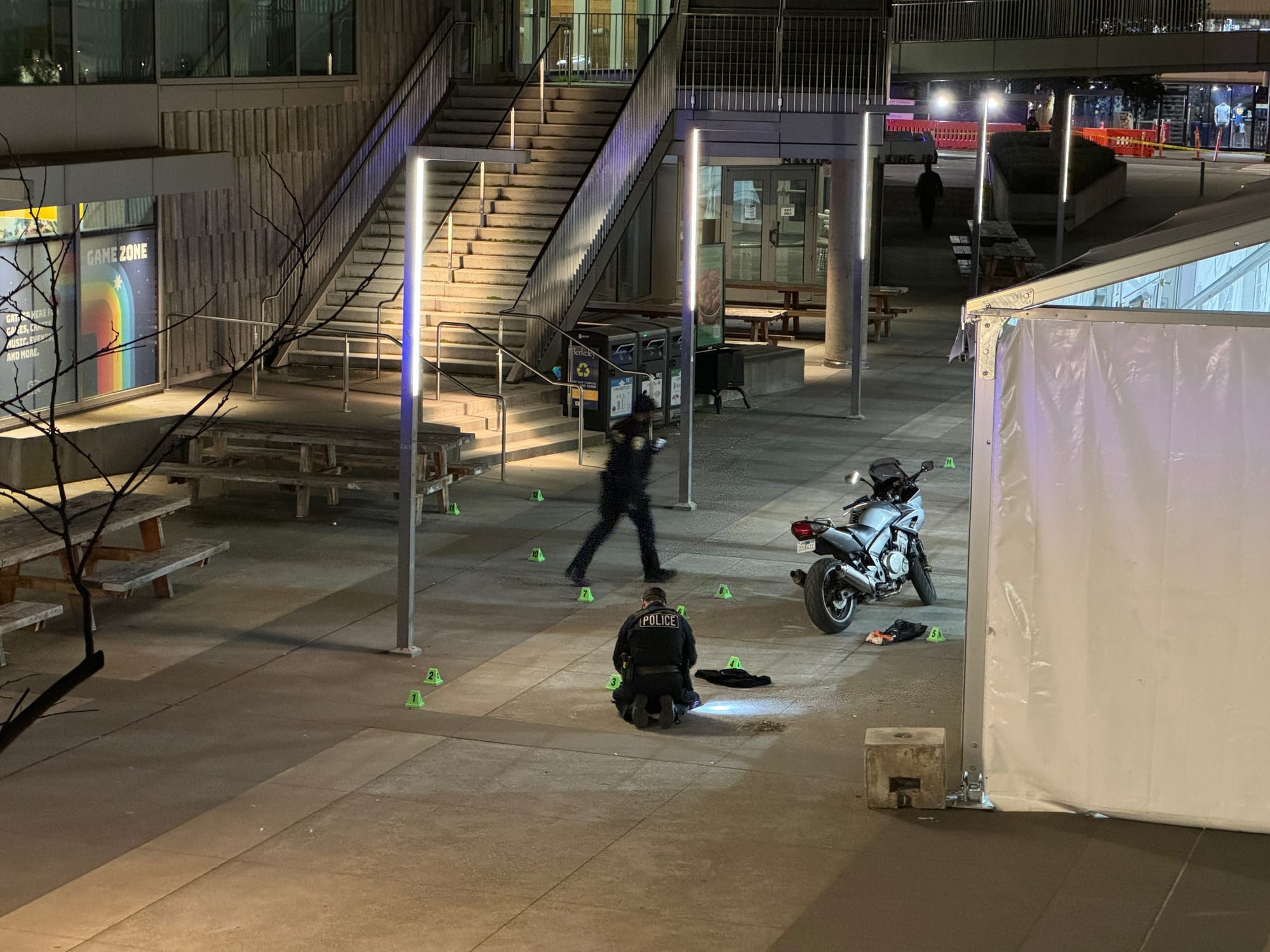 They also noted that there were 2,000 people inside Zellerbach Hall, just west of the plaza, who would eventually be coming out when it was safe.