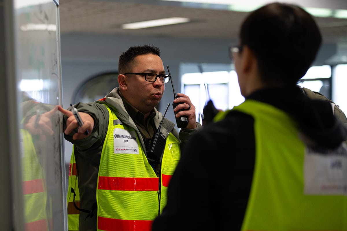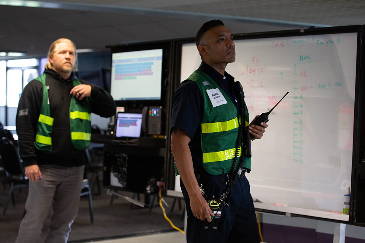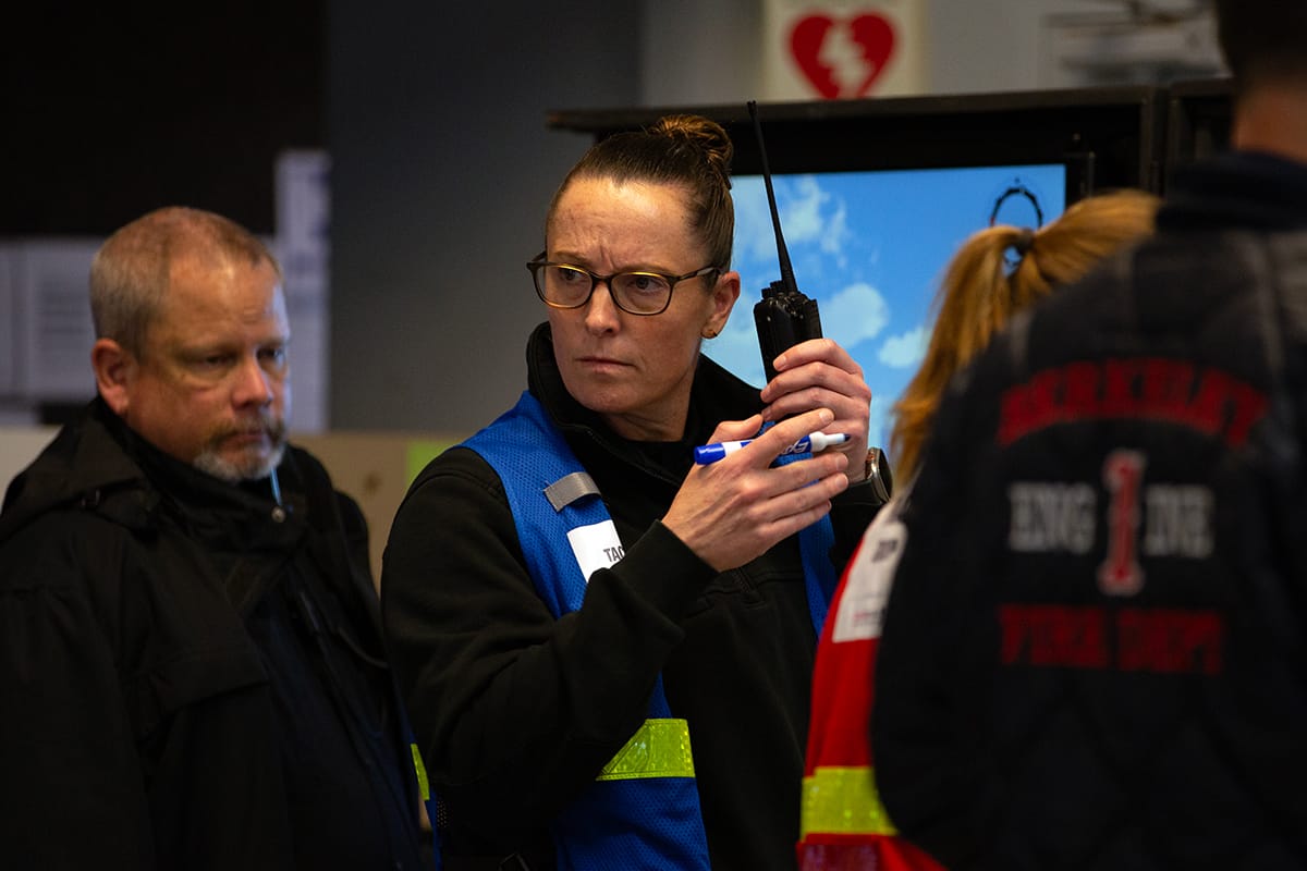 First responders work together at different stations to handle a variety of tasks. Emilie Raguso/TBS
