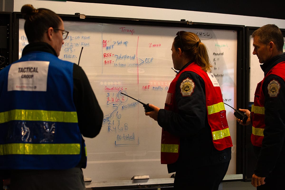 Participants assessed the risks, got aid to casualties, deployed resources as needed and ultimately addressed the threat.