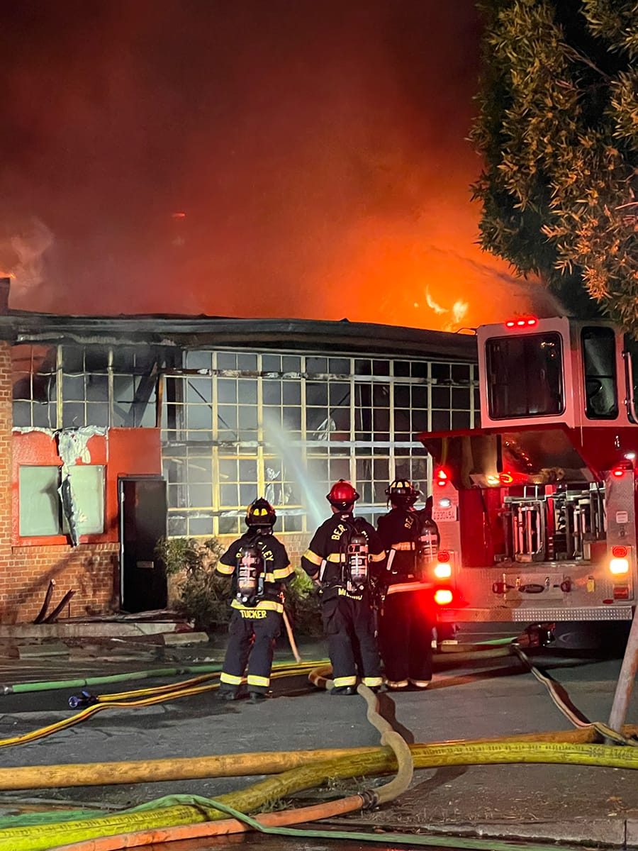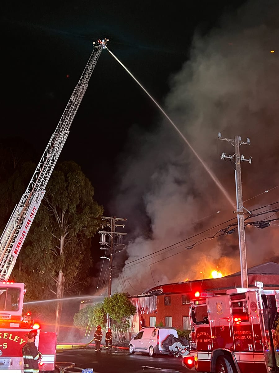 A structure fire at 701 Heinz Ave. on July 31, 2024. Berkeley Fire Fighters Association