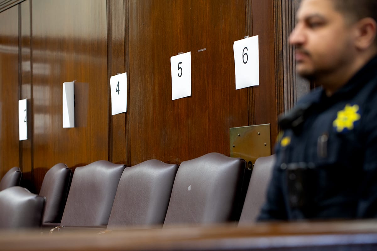 All members of the public were required to show photo ID to enter the courtroom. No electronic devices were allowed in without a court order.
