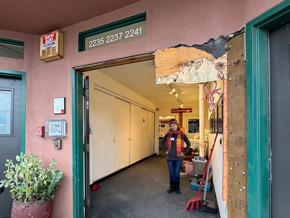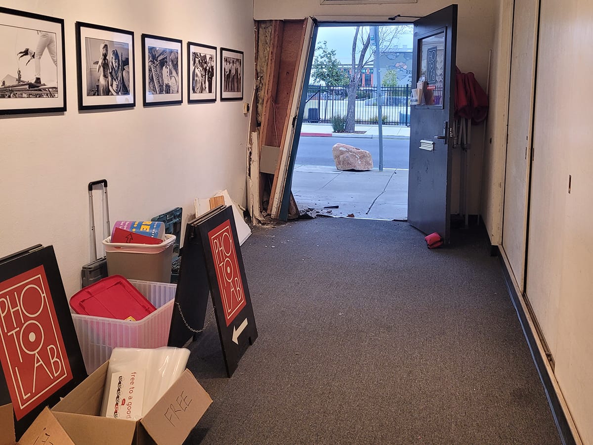 In the hours that followed, Smith met up with Berkeley police and learned that the crew had used a vehicle to ram its way inside, damaging the front wall of the Photolab building as well as the doorframe.