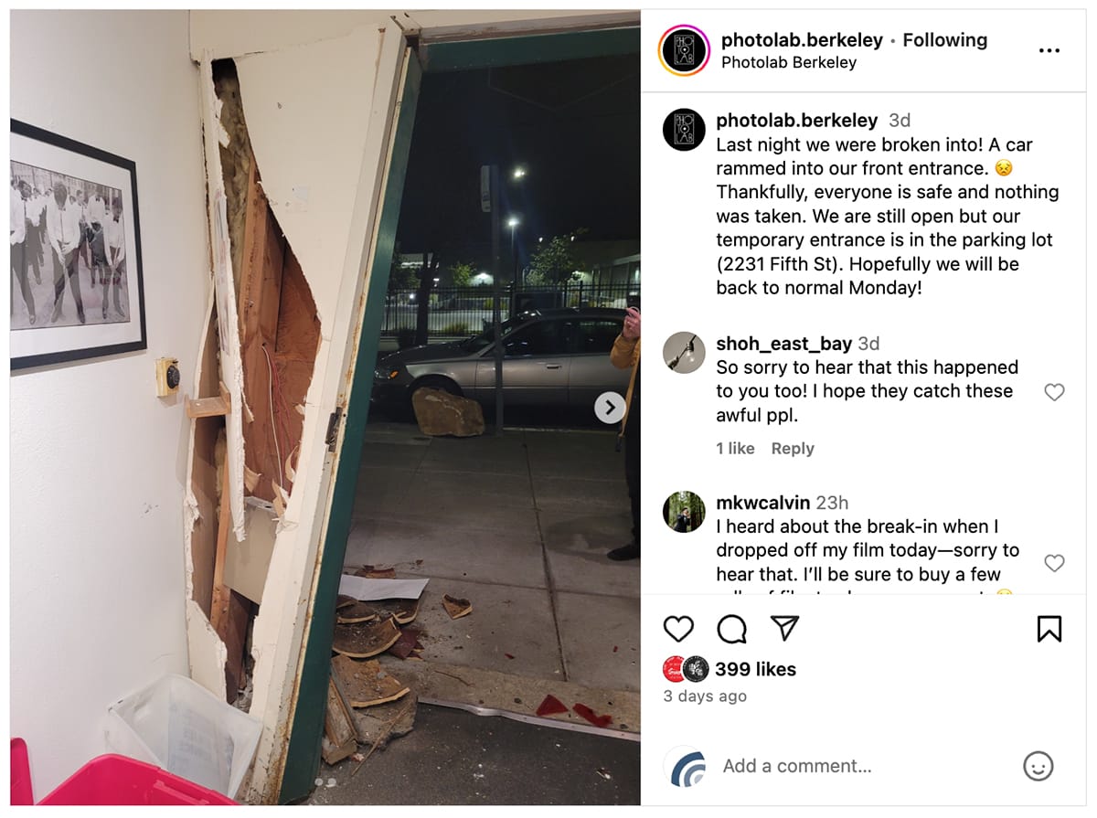In the days since, Berkeley Photolab announced a "break-in sale" offering discounts on shop services as it works to get back to business as usual.