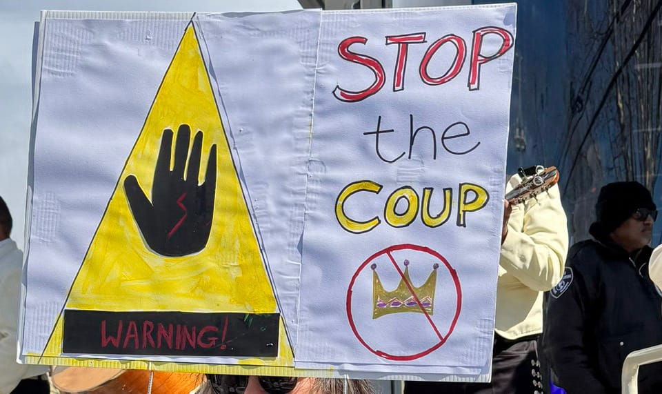 After publication, A. Mark Liiv shared video from Saturday's protest with TBS that filled in some of the gaps.
