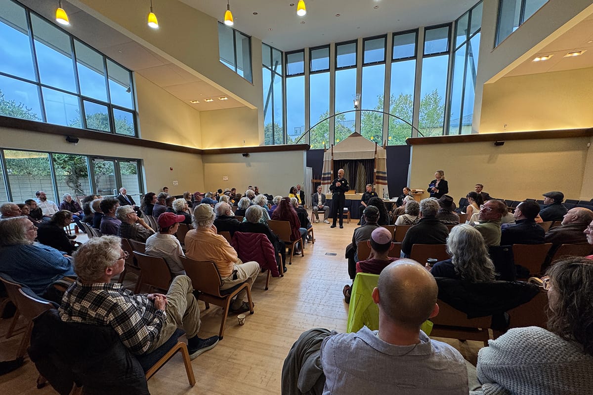 First: Members of Berkeley's Jewish community came together at a local synagogue last week to discuss rising antisemitism and how to respond to it.