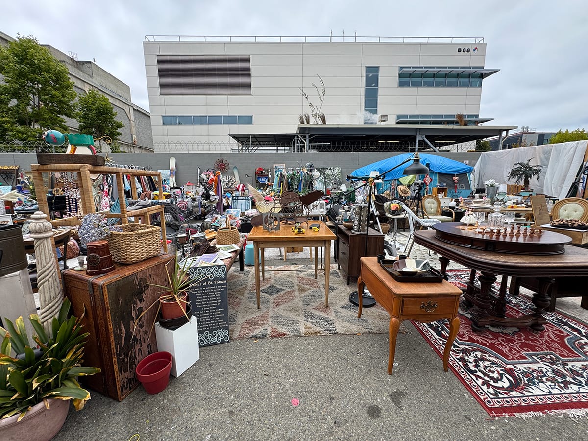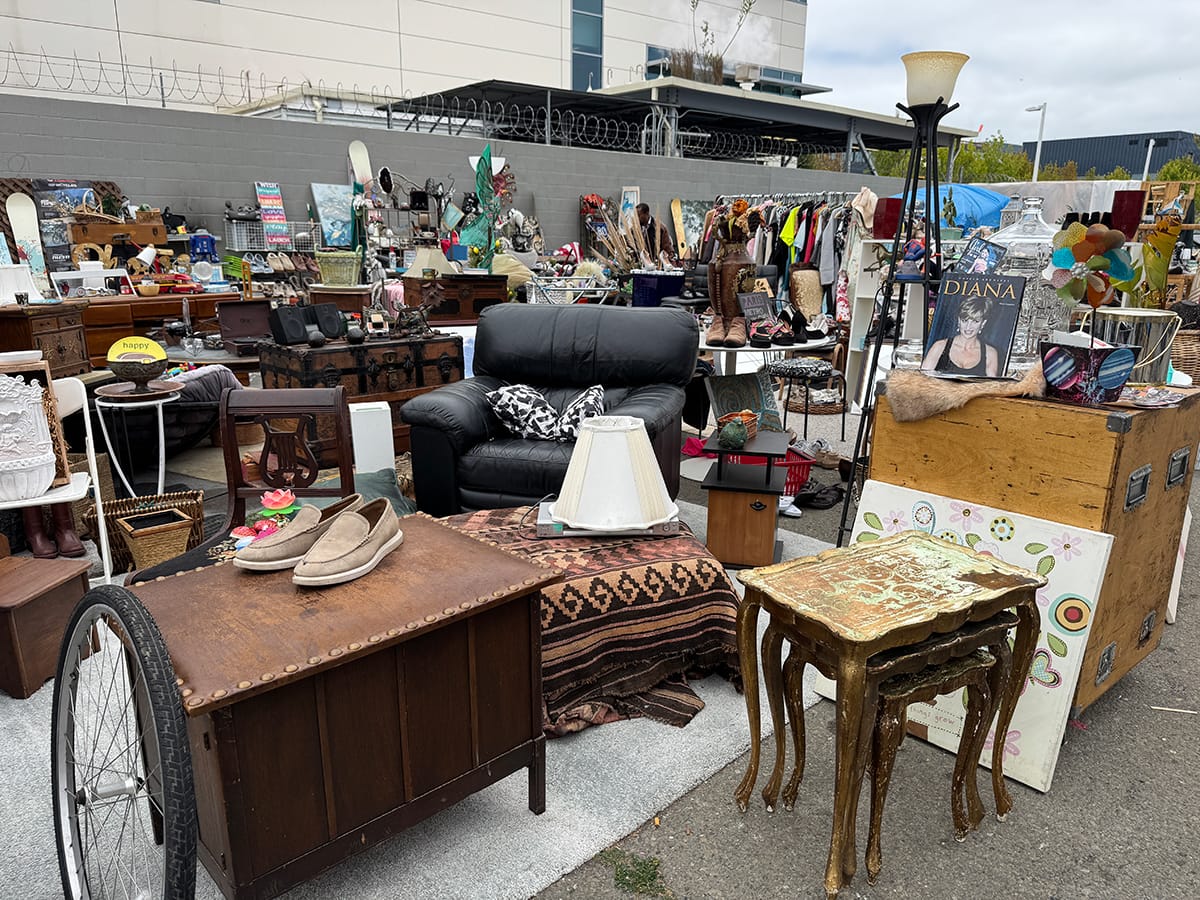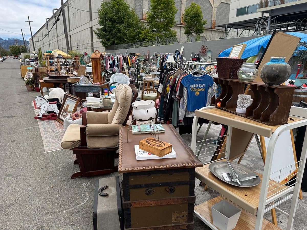 In addition to the scattered tents and parked vehicles, much of the block was taken up by Cowboy's Buy, Sell and Trade, an outdoor market of sorts made up of donated items and property recovered from the side of the road, said Cowboy, its purveyor.
