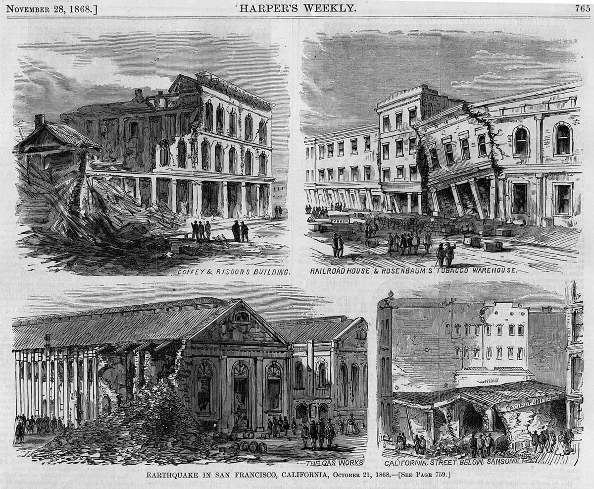 The earthquake of 1868 was powerful enough — somewhere between a 6.8 and a 7.0 magnitude — that, even after destroying much of San Leandro and Hayward, it still had enough wallop to slither with the speed of a jet fighter to Sacramento, where it shook the ground with such violence that the Sacramento River ran momentarily backward, leaving a ship called The Globe sitting in mud.
