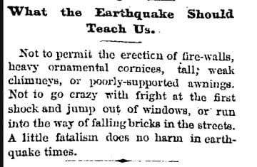 They warned to never build with heavy cornices, overhangs or awnings, as they could fall and kill people running out of buildings, as had just occurred.