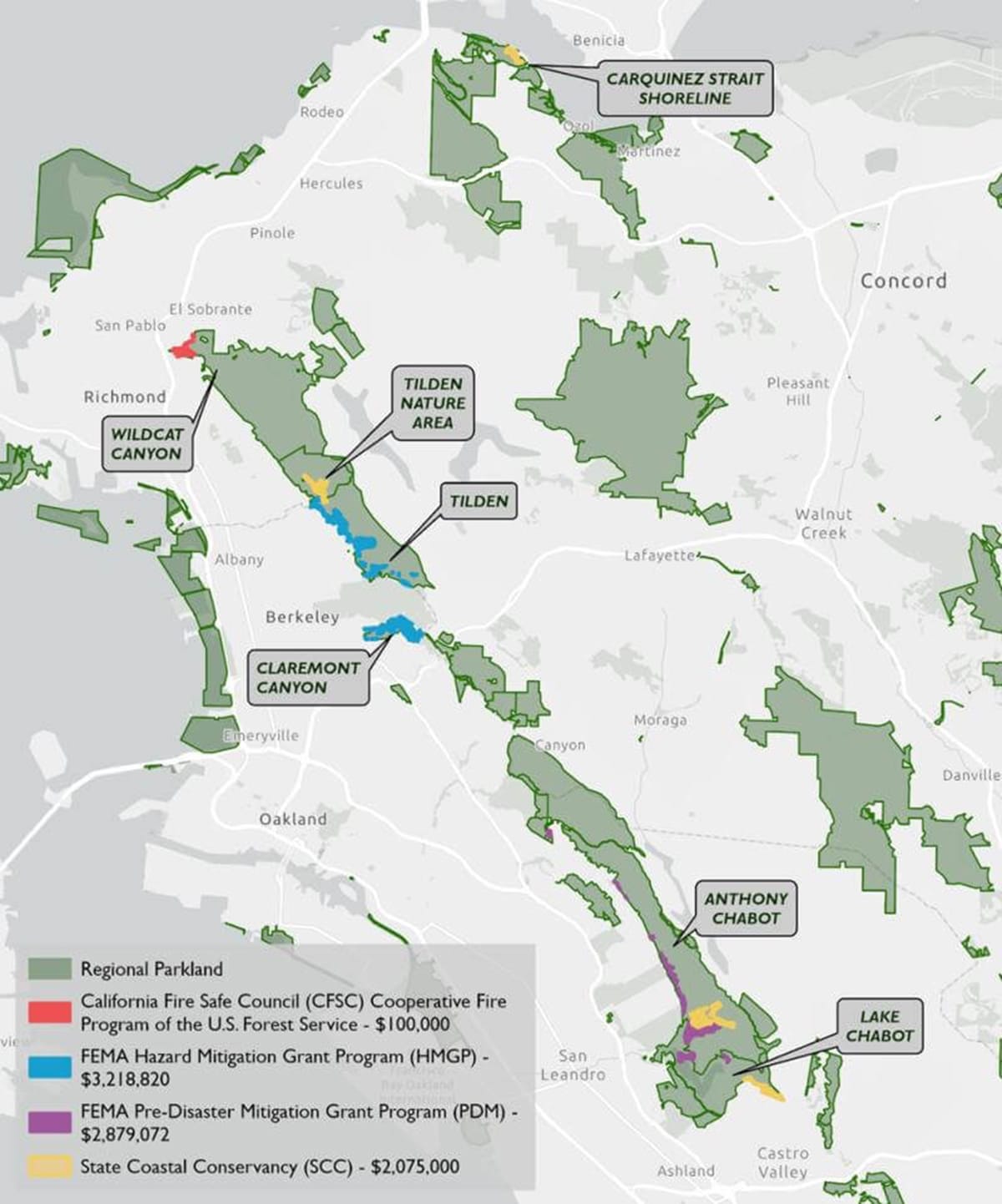 Other partner agencies tapping the wildfire program include the East Bay Municipal Water District (EBMUD), California State Parks, Contra Costa Water District, Contra Costa and Alameda Flood Control districts and the city of Oakland.