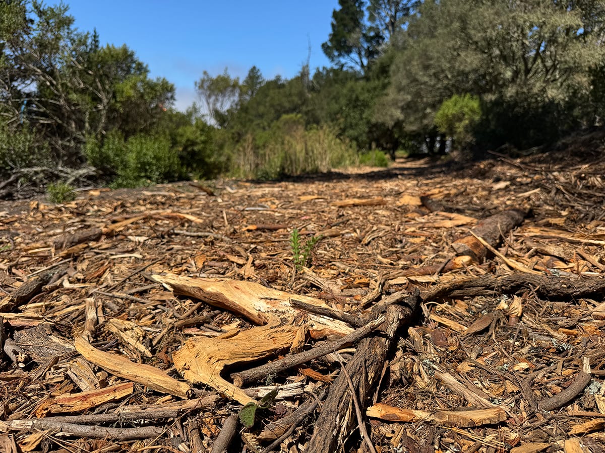 Grasses are mowed. Trees downed. Branches chipped or piled for rainy season prescribed burns.