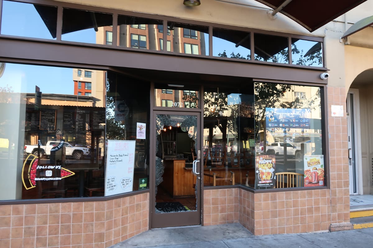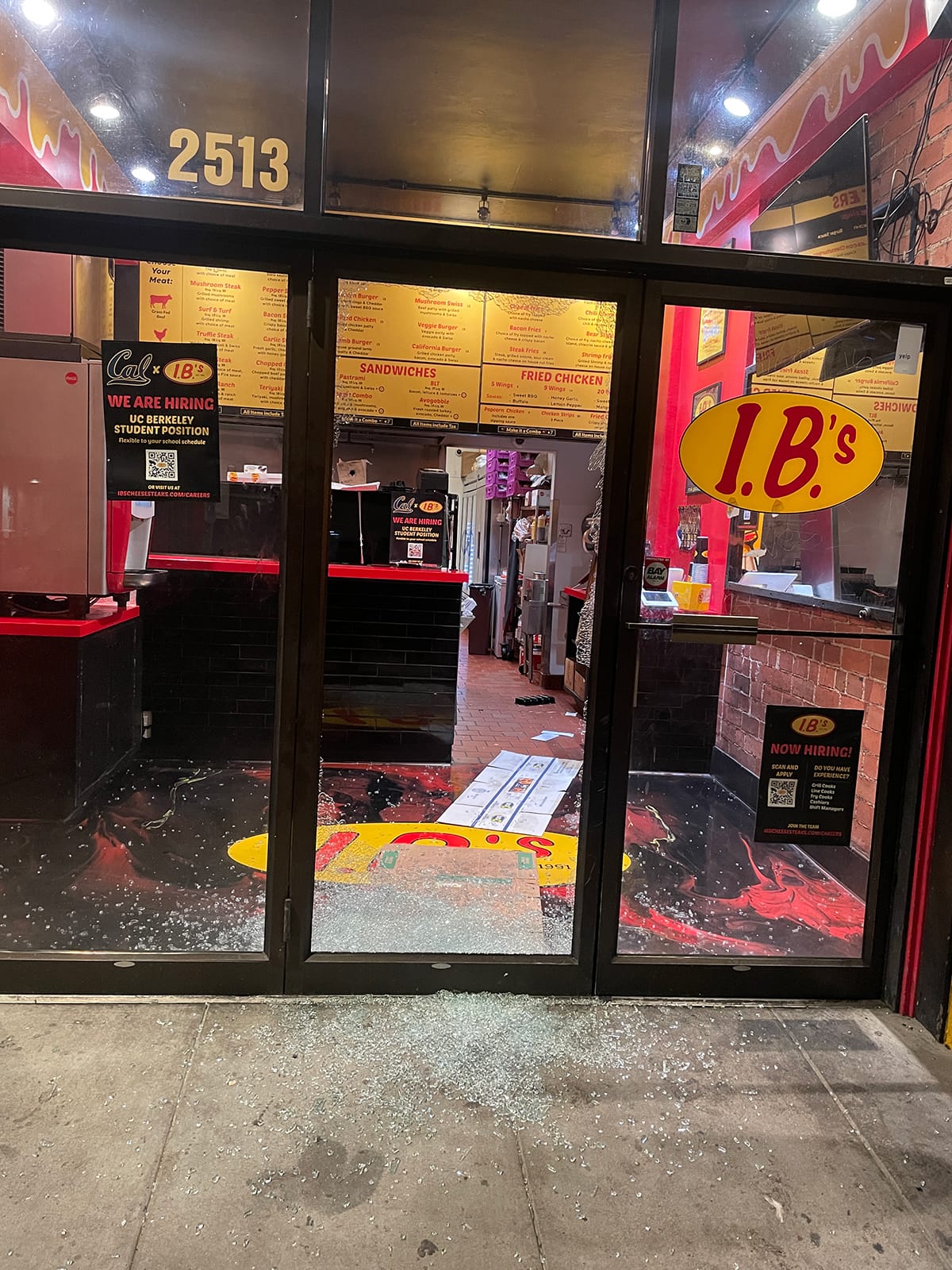 Shattered glass at IB's Cheesesteaks on Durant Avenue and Bobby G's Pizzeria on University Avenue. BPD