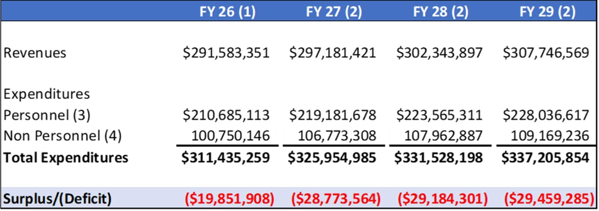 White cautioned that the $29 million budget deficit projection was "our best guess … at this moment," and said it could change as numbers firm up in 2026.