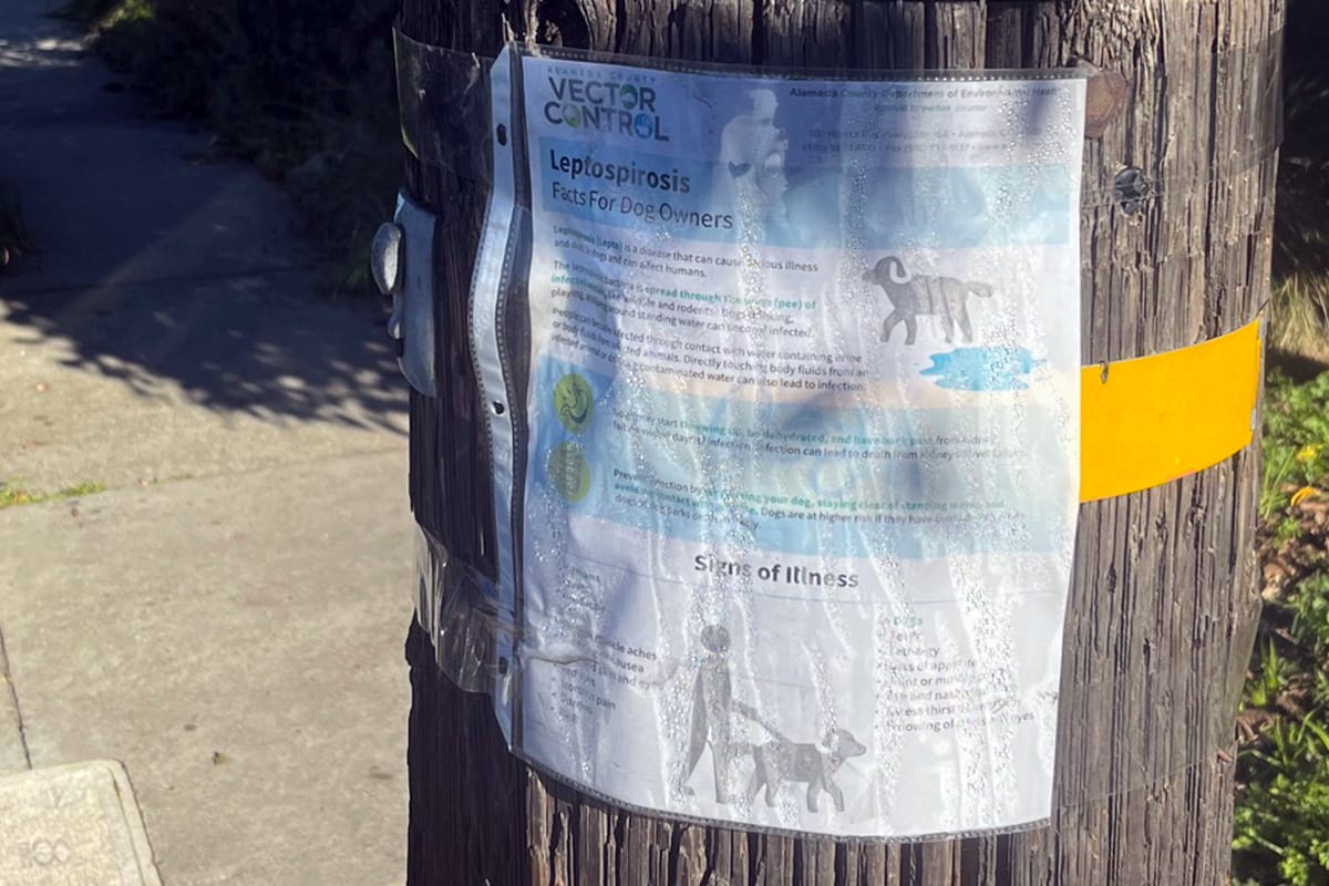 Berkeley officials are warning the public about leptospirosis, a bacterial disease that can be fatal in dogs and humans, after animals in the Harrison Street corridor tested positive in recent months.