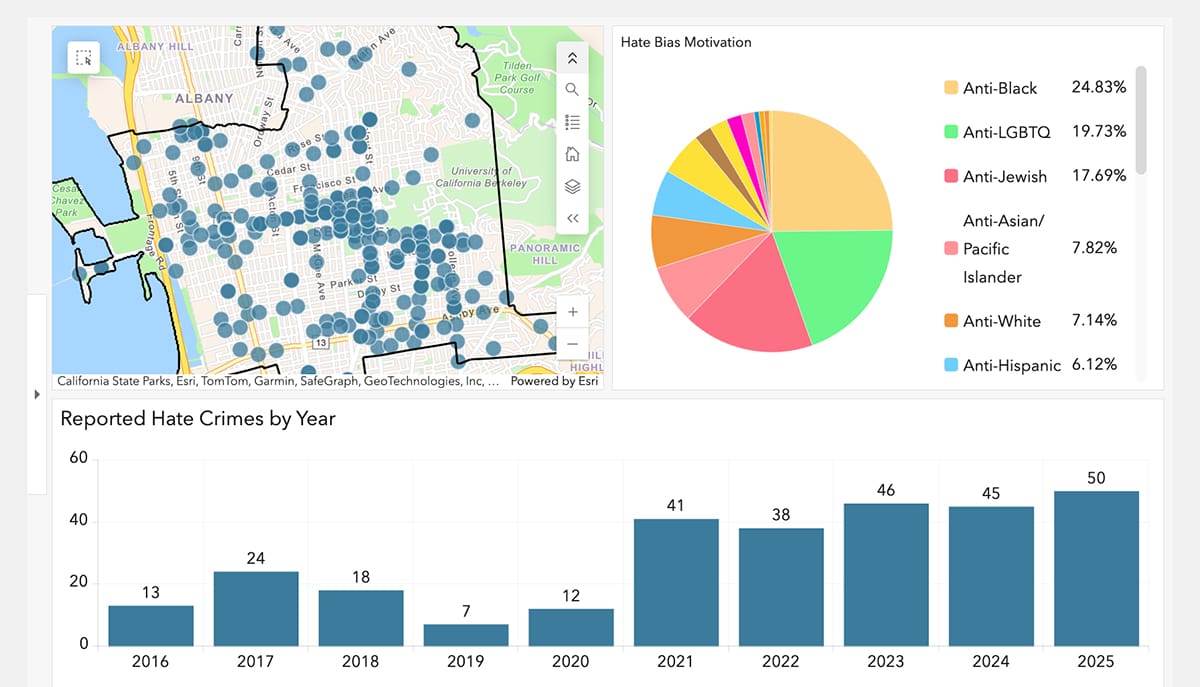 According to BPD data, anti-Black hate crimes are the most common category of hate crimes reported in Berkeley — both last year, when they made up 30% of the city's reports, and over the past decade, when they made up 25%.
