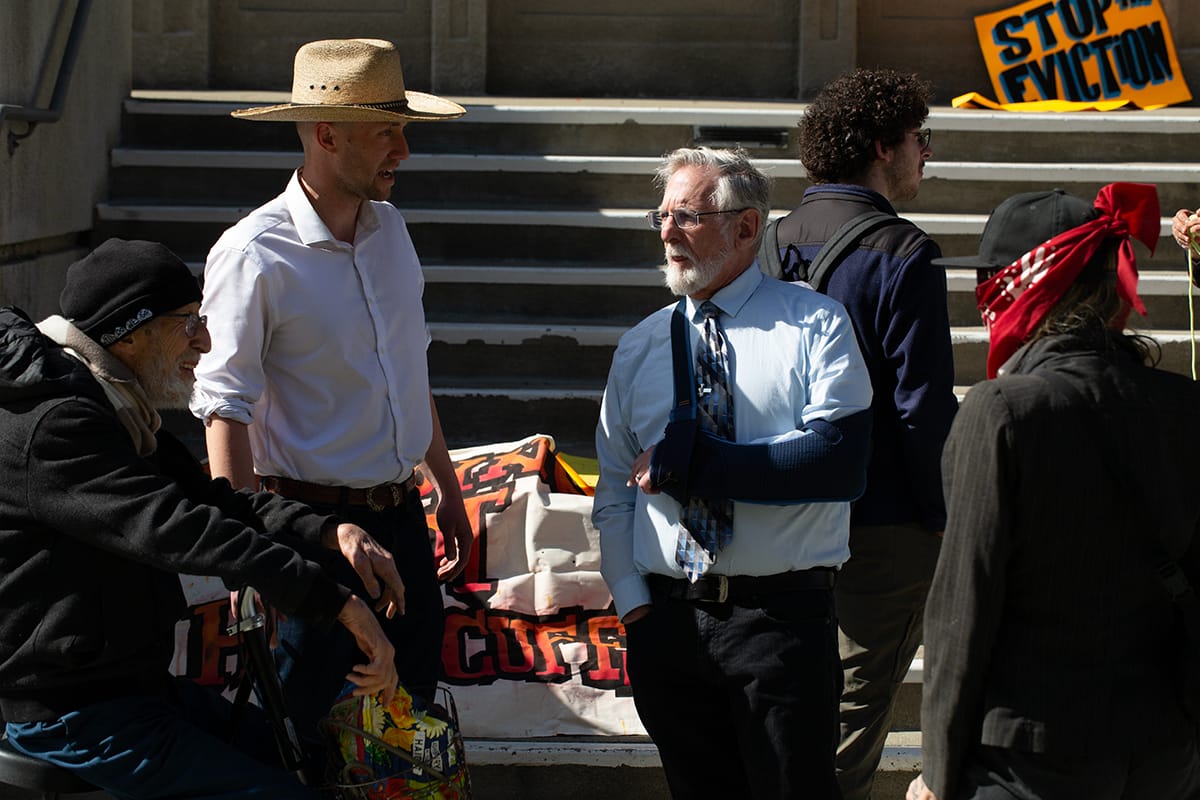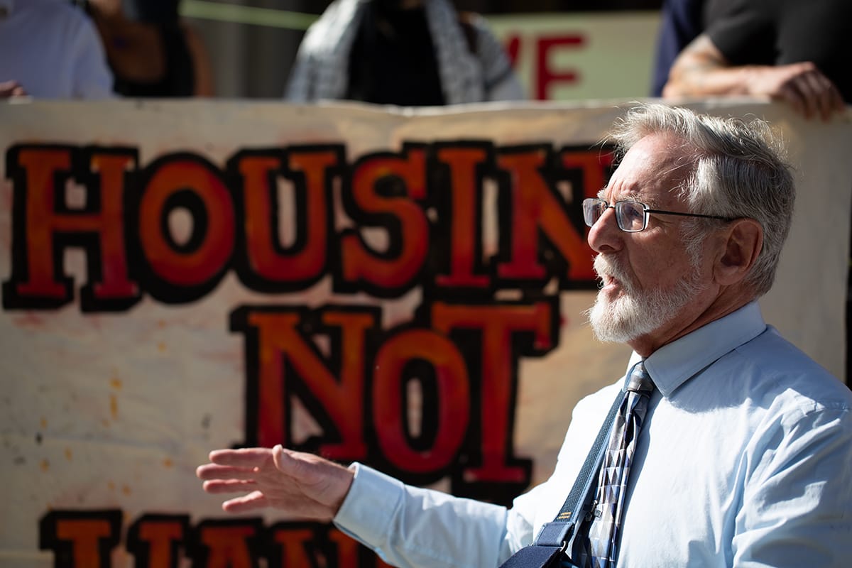 At Monday's press event, Osha Neumann — Berkeley's most prominent legal advocate for homeless denizens — briefly took the stage to denounce the city's overall approach to unhoused residents.