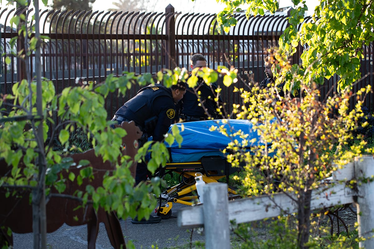The witness called police just before 2:45 p.m. after seeing the man next to the Ohlone Greenway at Northside Avenue, south of Gilman Street, with a red sleeping bag and several other personal items.