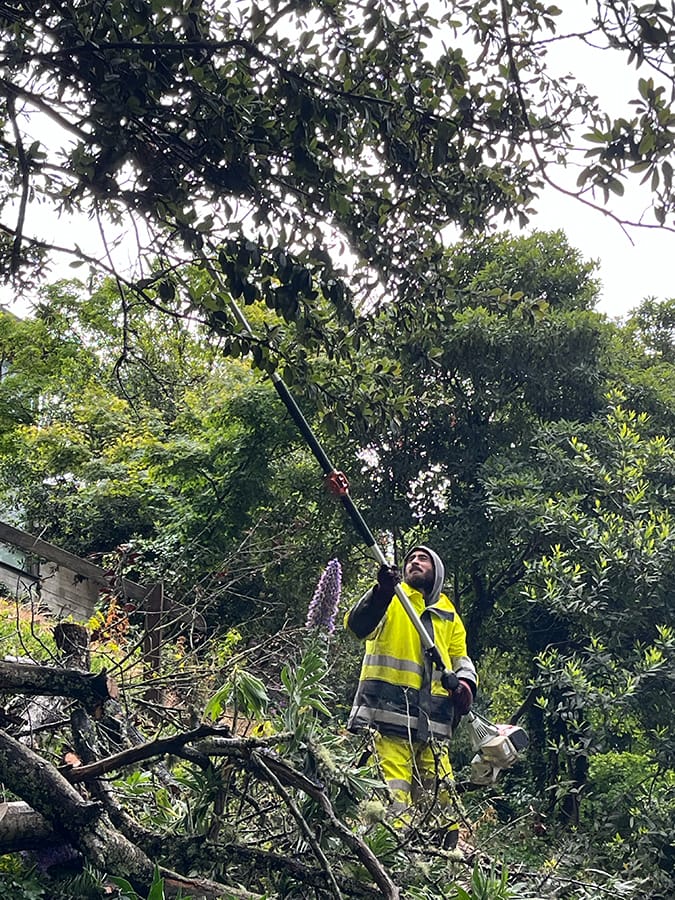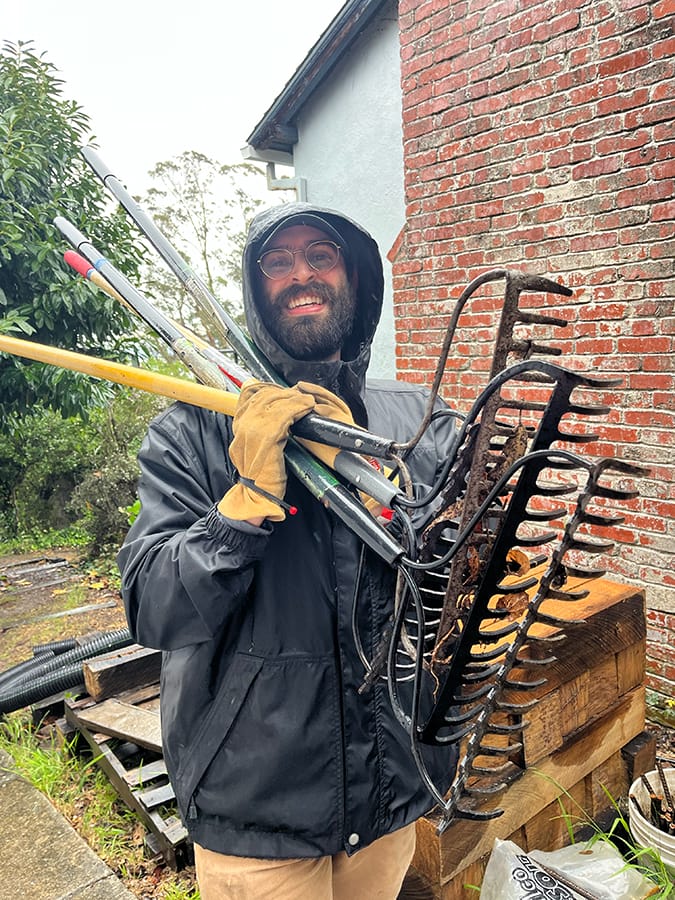 But in downpours Saturday, contentiousness around plants and fire seemed far from people's minds, as they hauled piles of branches, pulled up weeds and scooped gravel.